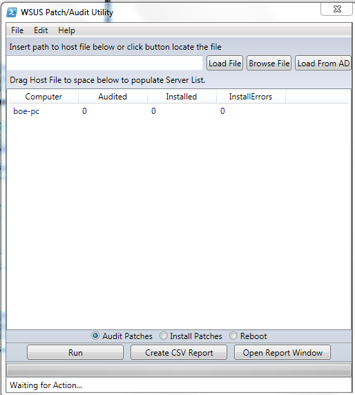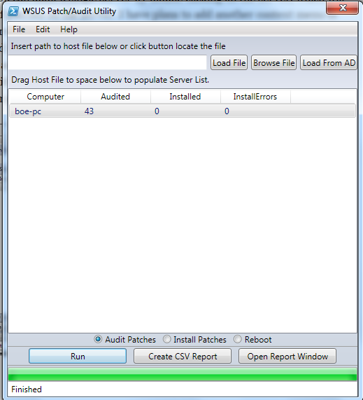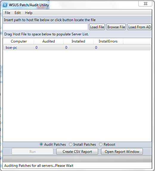 This tool is still in an Alpha state, meaning that some features will not work and some bugs that I am working on fixing. The most glaring piece that will not work is the Reboot Host capability. I decided to focus on a few other things and pushed this off until the next version. While I do not like releasing things that are not 100% complete, I felt that the most used features (audit and install) would be available to use to the user with potential bugs that I can pick off as I see them.
