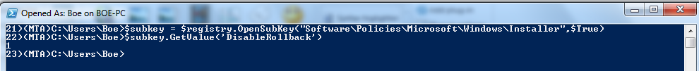 $value = $subkey.GetValue('DisableRollback')