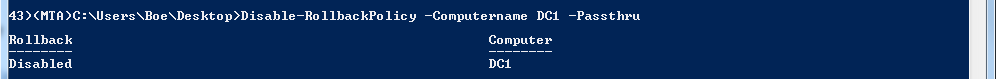 Disable-RollbackPolicy -Computername DC1 -Passthru