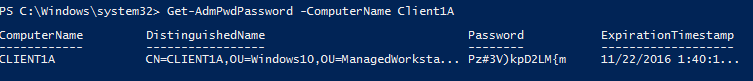 Of course, there is always an easier way to accomplish things like this in PowerShell and the way here comes courtesy of the Get-AdmPwdPassword cmdlet. The nice thing here is that the password is also converted for us to a more human readable time.
