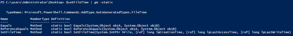 $setFileTime = Add-Type -Name FileTime ` -MemberDefinition $signature -PassThru $setFileTime | gm -static